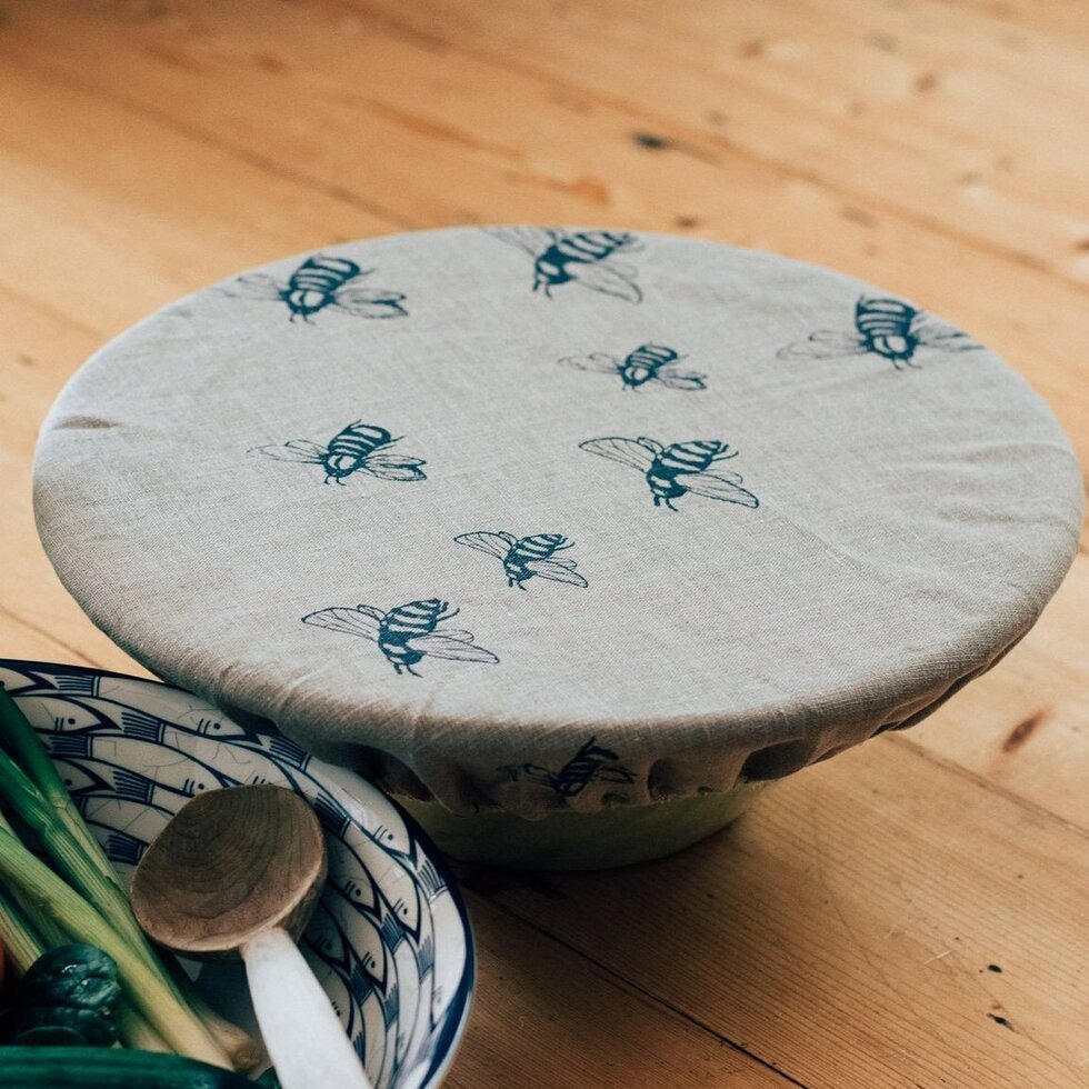 This elasticated linen bowl cover features a charming honeybee design, making it the perfect addition to any party or family gathering. It's ideal for extra large bowls, whether you're using it indoors or taking it outside for a barbeque. It's even great for keeping food covered in the fridge or while transporting it.